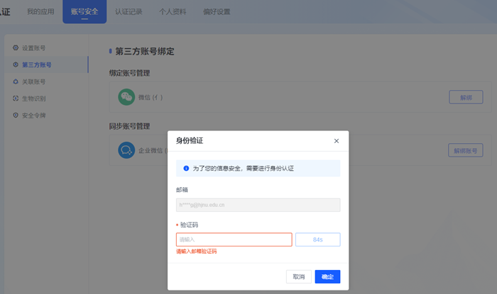个人中心——账号安全——第三方账号——企业微信:立即解绑——邮箱收到验证码,并填写(没有绑定邮箱,请先操作步骤三)——解绑成功后会显示“企业微信(未加入)”,此时点击“立即邀请”
