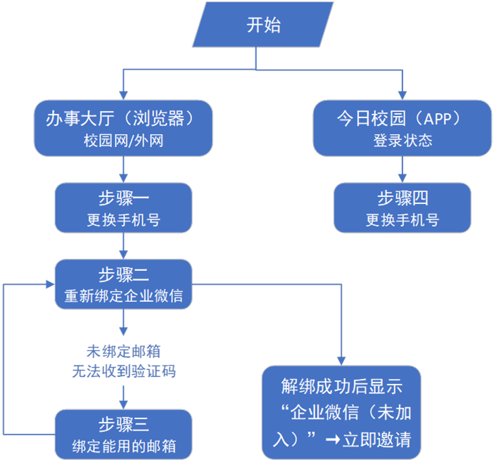 更换今日校园、办事大厅、企业微信等系统留存的手机号,请仔细阅读并按照提示操作,全程自助操作: